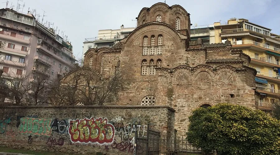 მე-13 საუკუნის ბიზანტიური ეკლესია, რომელიც თესალონიკის ცენტრში მდებარეობს, საკმაოდ უჩვეულოდ გამოიყურება - უძველესი ნაგებობა, როგორც ჩანს, განვითარებადი ქალაქის თანამედროვე მაღალსართულიან შენობებს შორისაა მოქცეული.